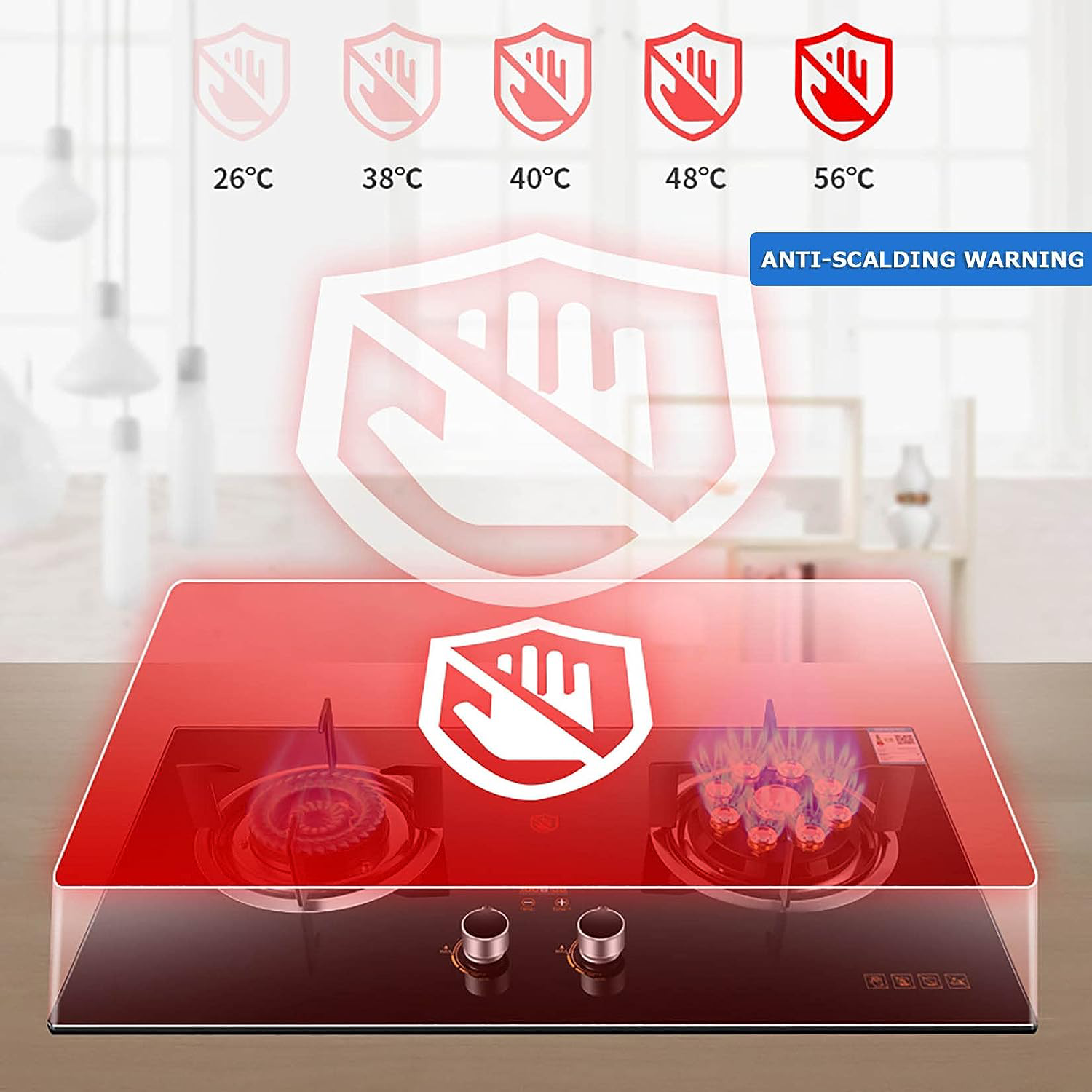 This 2 burner gas hob offers a range of cooking options to cater to various culinary needs. Made with explosion-proof tempered glass, it promises sturdiness, high temperature resistance, and easy cleaning. Featuring a 188-minute timer and safety features like the red dot anti-scald warning and the thermocouple flame shutdown, it ensures user safety at all times. Its sleek design makes it ideal for diverse settings like home kitchens, RVs, and apartments.